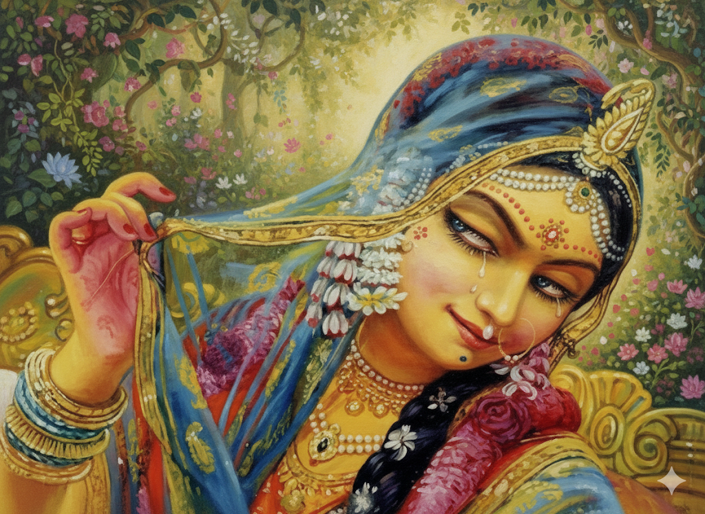 However, Shri Radha enchants even Shri Krishna. This is why she is called Madana Mohana Mohini—the enchantress of the enchanter of Kamdev.