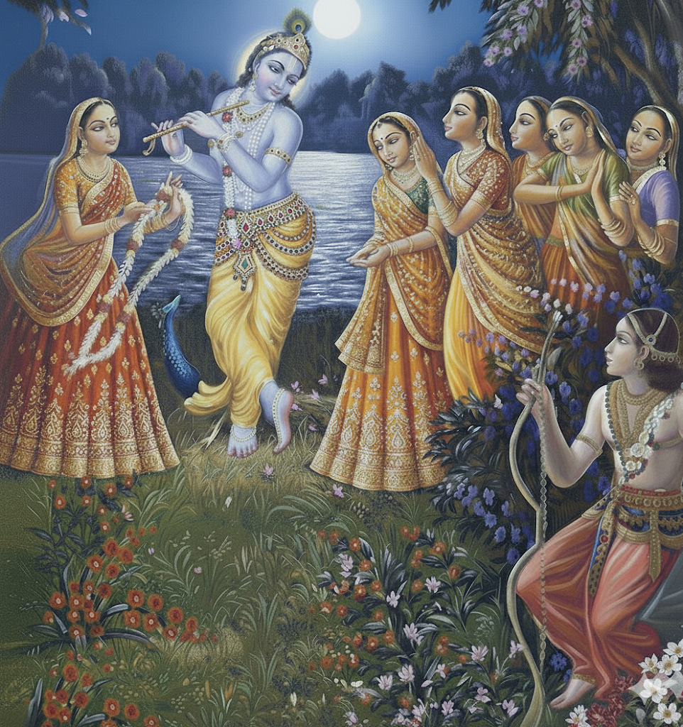 It is no surprise that the Gopis were enchanted by Shri Krishna. However, what is truly astonishing is that Shri Krishna was enchanted by these insignificant Gopis. He was not captivated by their physical beauty. His wife, Mahalakshmi, is so beautiful that countless Rati (wife of Kamdev) could be sacrificed on a single pore of Her body, yet She does not have the same proximity to Him as the Gopis.