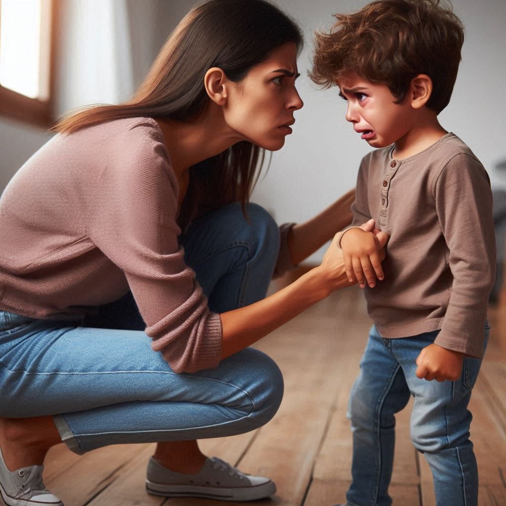 At first she might lovingly encourage the child to stop the bad behavior. She might use encouraging words and promise rewards for good behavior. If the child does not stop she might show anger to scare the child to stop.