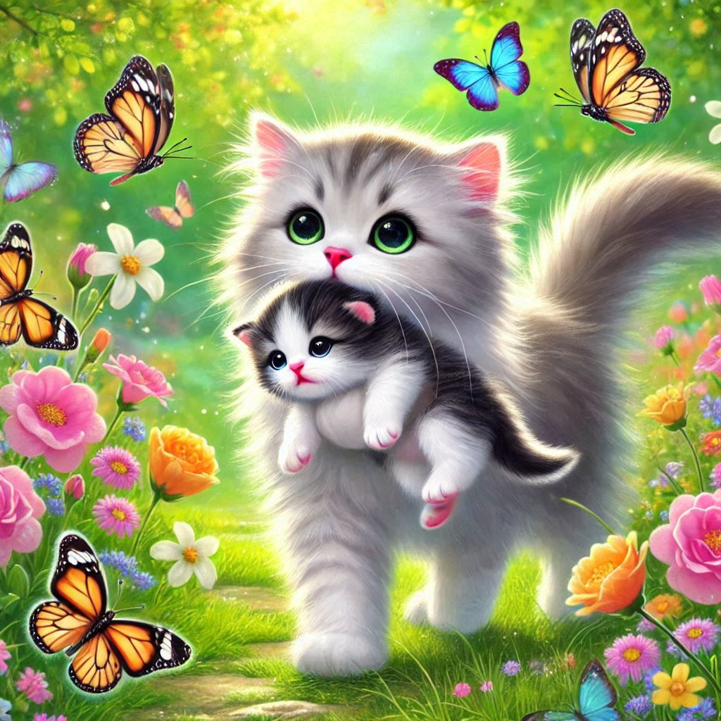 The mother cat marjari (Devanagari: मारजारी ISO15919: mārajārī) herself holds on to the kitten in her mouth. The mother is more capable and she protects her child from falling and getting hurt.